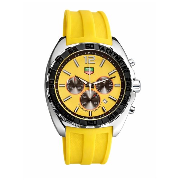 Tag Heuer «Formula 1» 45 Nueva Colección Cronógrafo Plateado Amarillo Caucho