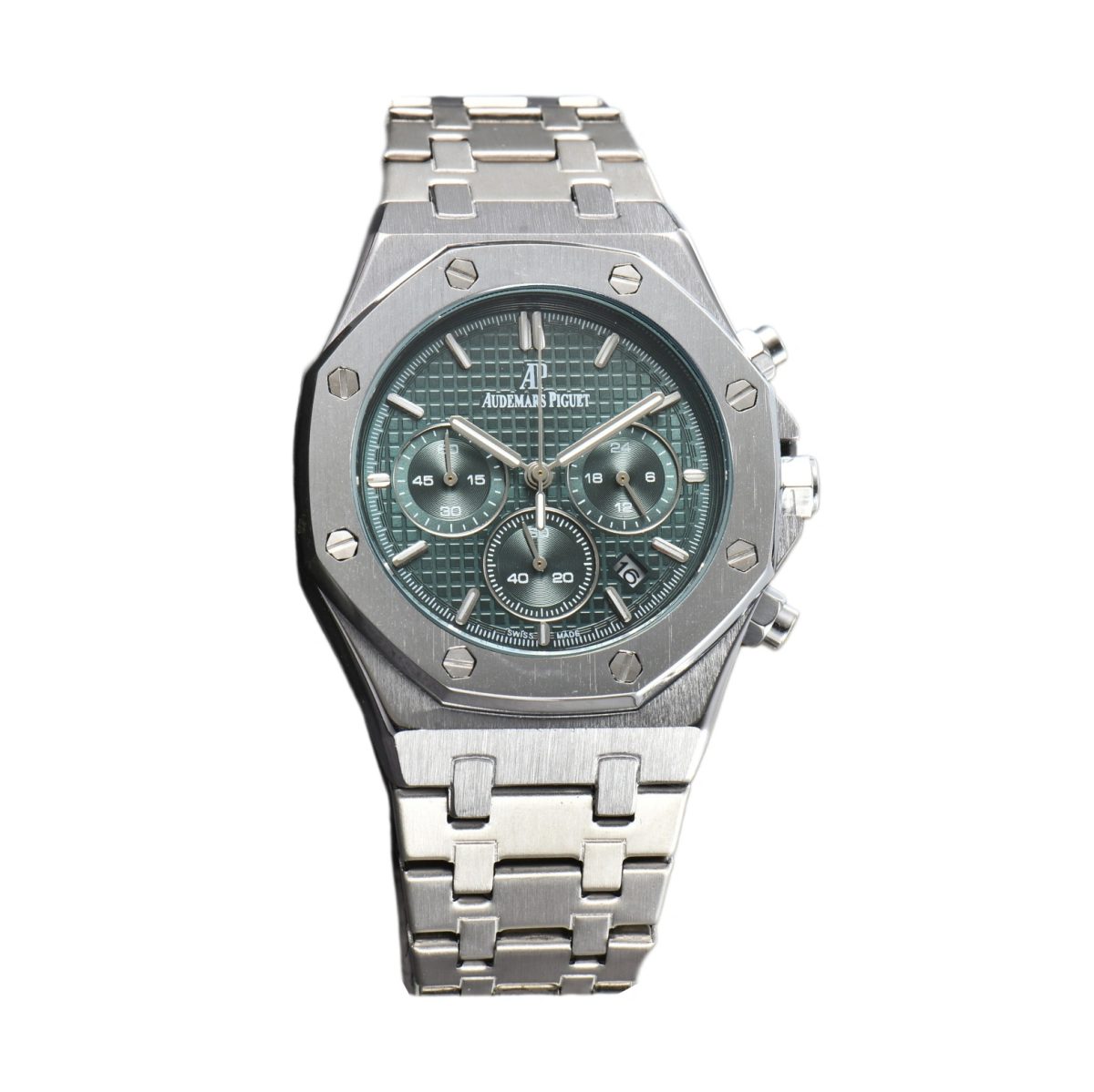 Este Audemars Piguet Royal Oak 42 Cronógrafo Plateado Esfera Verde puede ser tuyo solo por S/250.00, Si tienes alguna duda, escríbenos.
