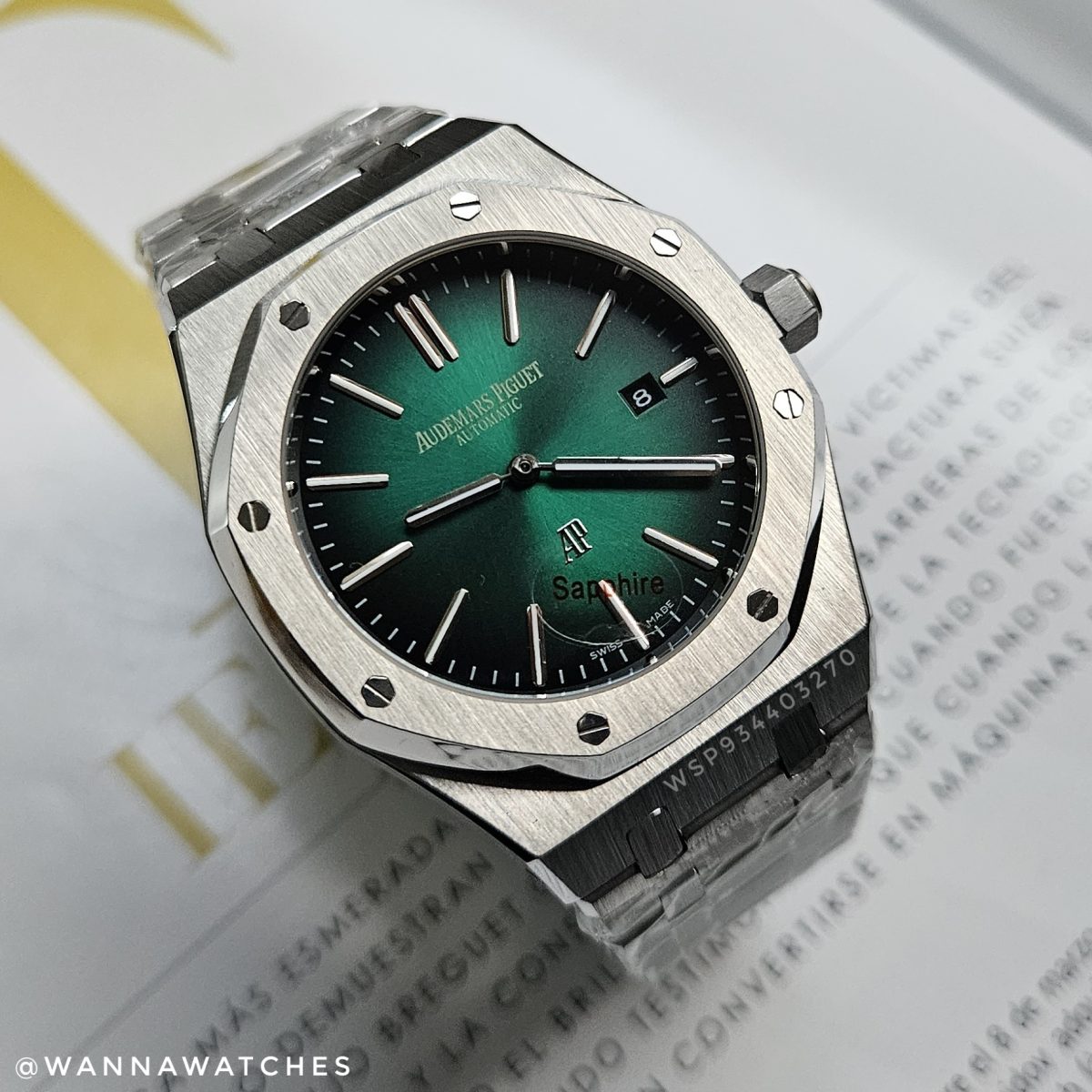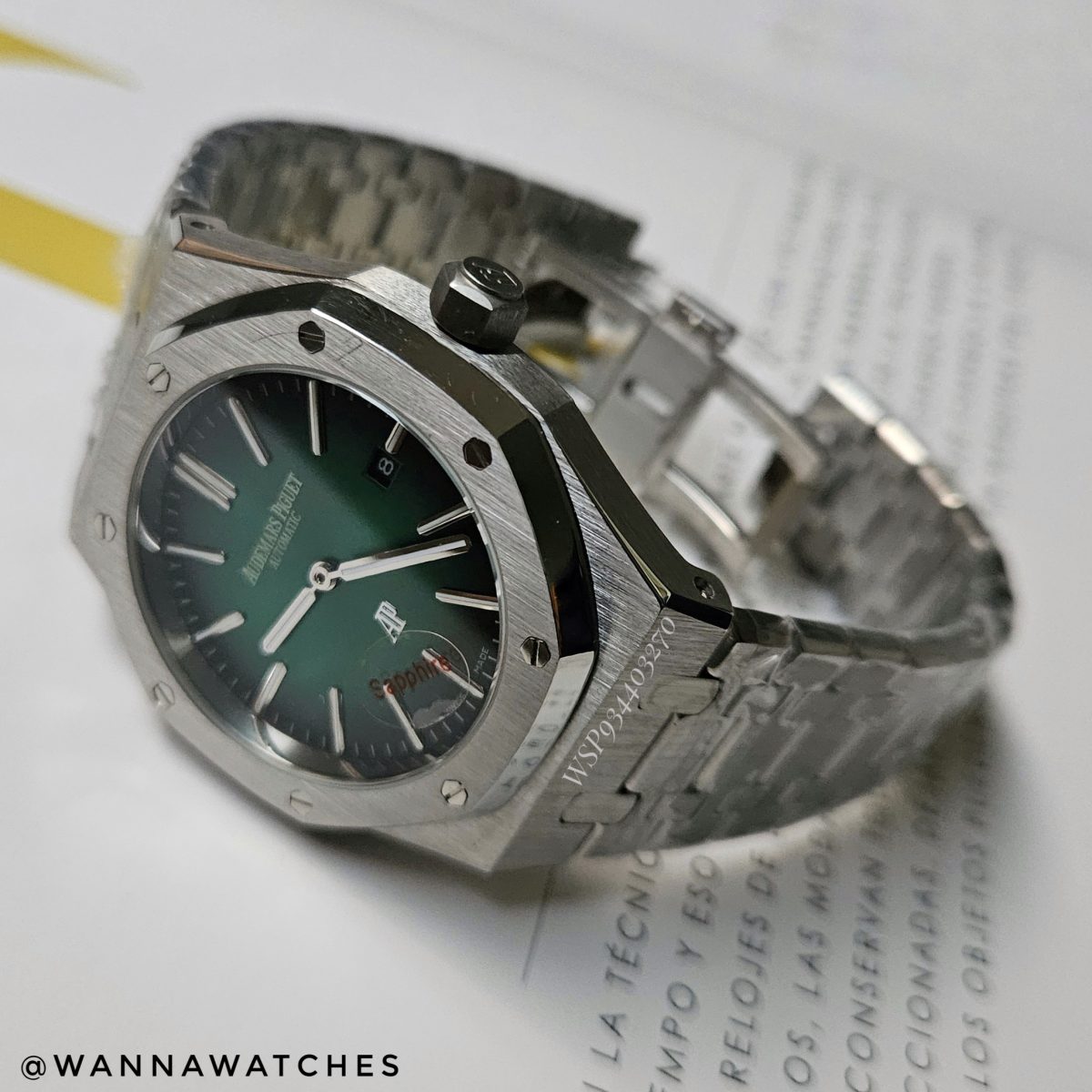 Este Audemars Piguet Royal Oak 42 "Jumbo" Acero Esfera Verde Ahumada Automático AAA puede ser tuyo solo por S/650.00, Si tienes alguna duda, escríbenos.