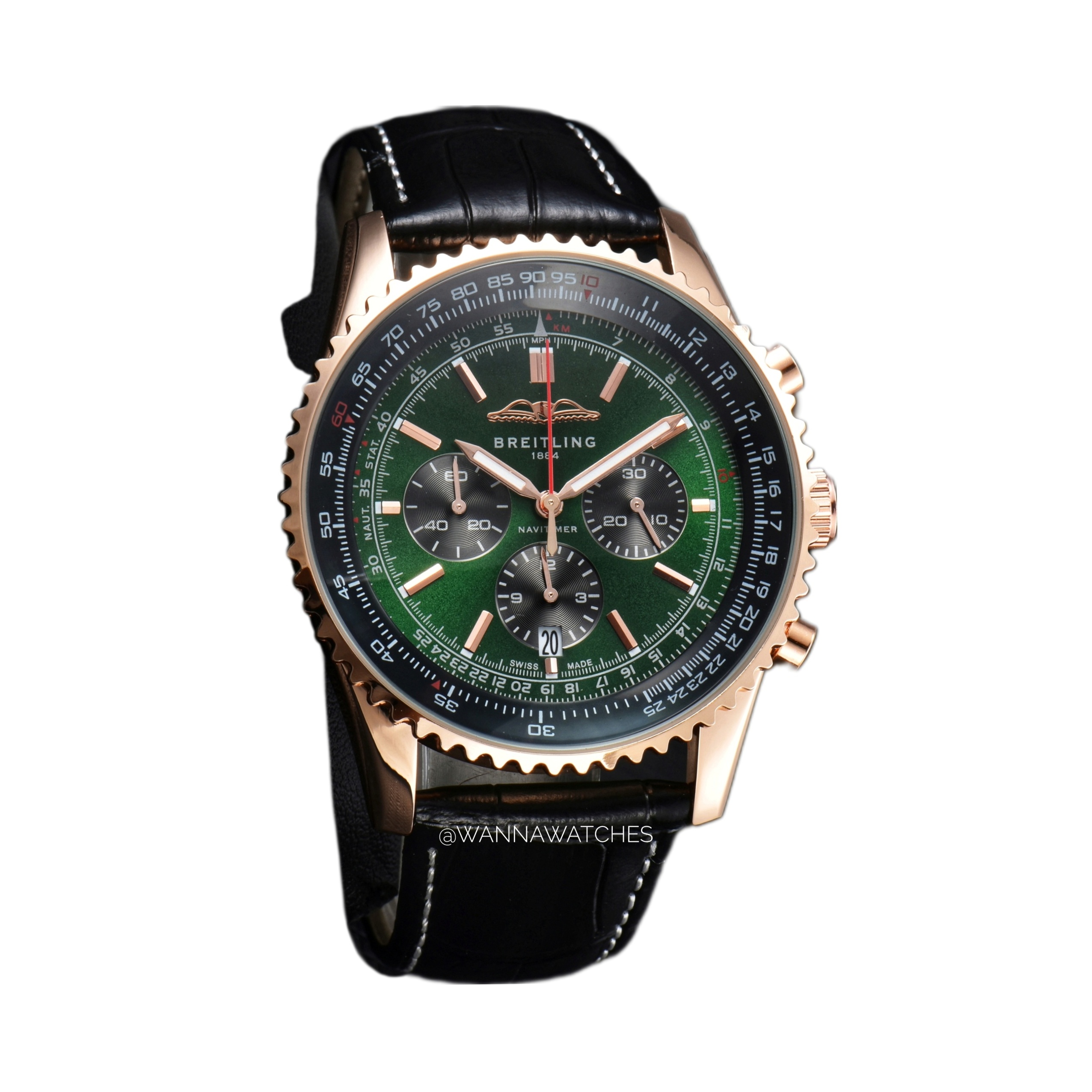 Breitling Navitimer 43 Oro Rosa Esfera Verde Correa Negra