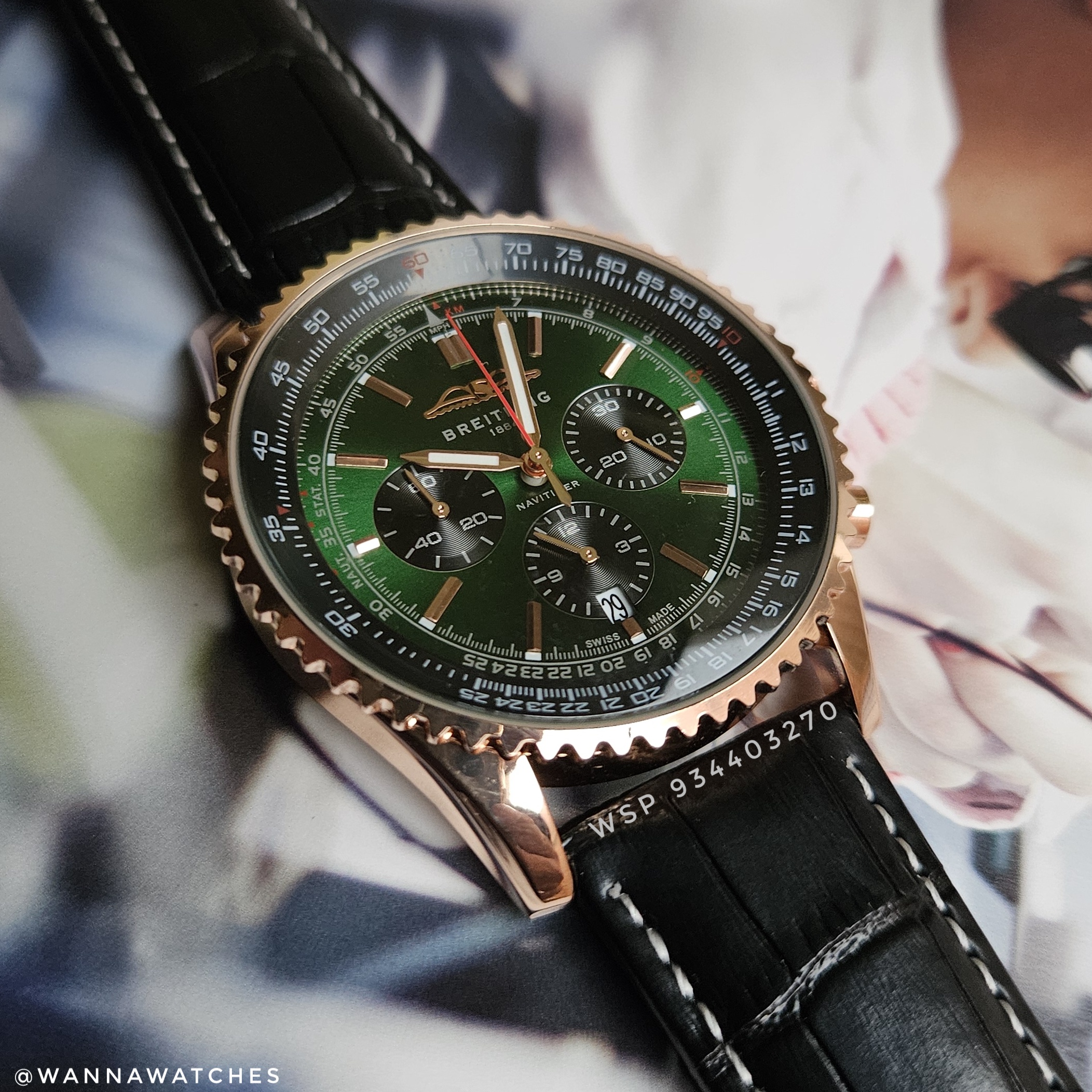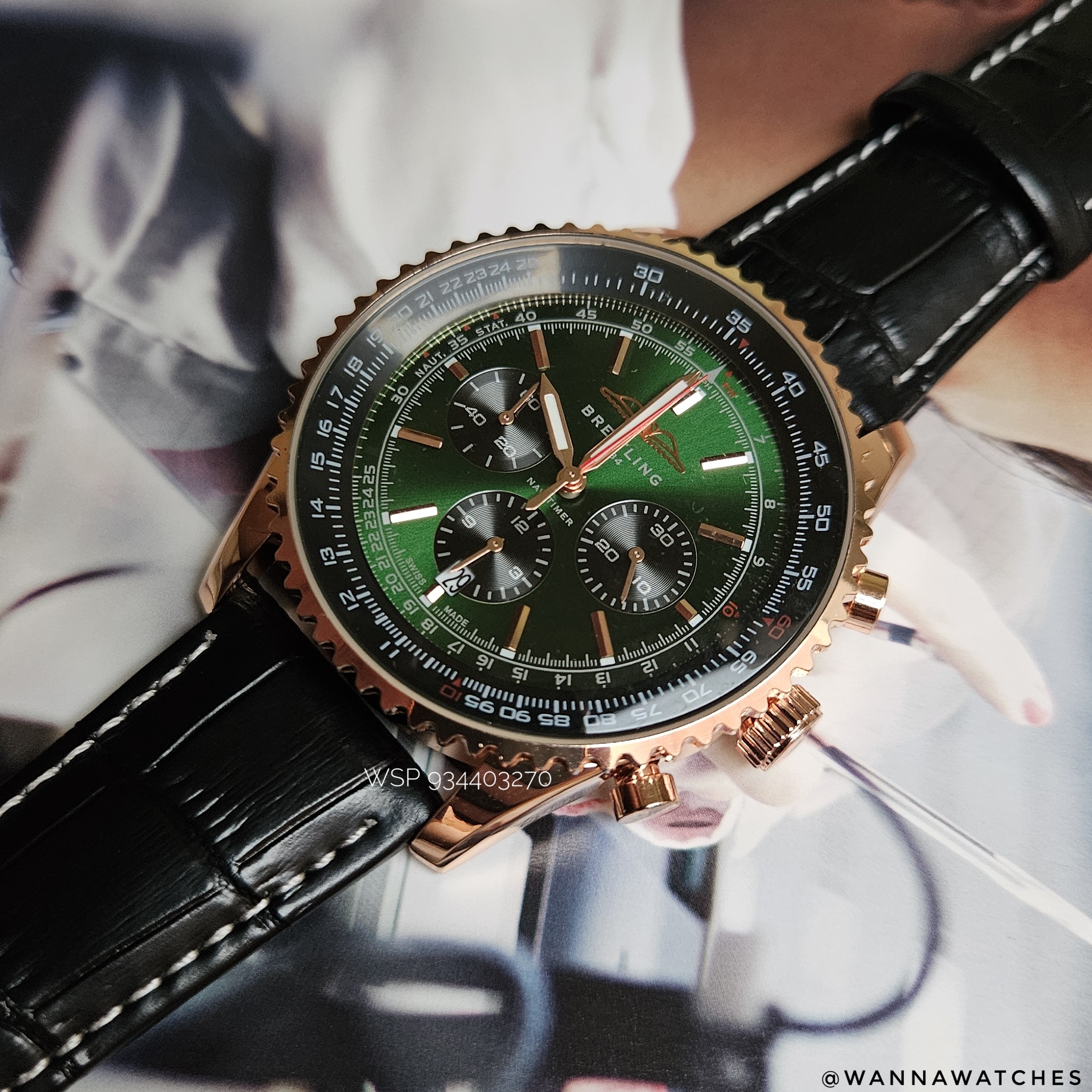 Este Breitling Navitimer 43 Oro Rosa Esfera Verde Correa Negra puede ser tuyo solo por S/250.00, Si tienes alguna duda, escríbenos.