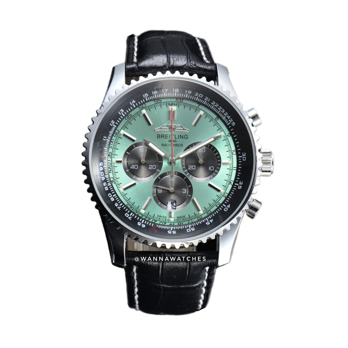 Este Breitling Navitimer 43 Plateado Esfera Verde Correa Negra puede ser tuyo solo por S/250.00, Si tienes alguna duda, escríbenos.