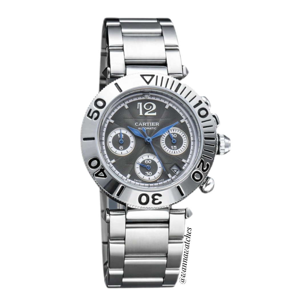 Este Cartier Pasha 41 Cronógrafo Plateado Esfera Gris puede ser tuyo solo por S/280.00, Si tienes alguna duda, escríbenos.