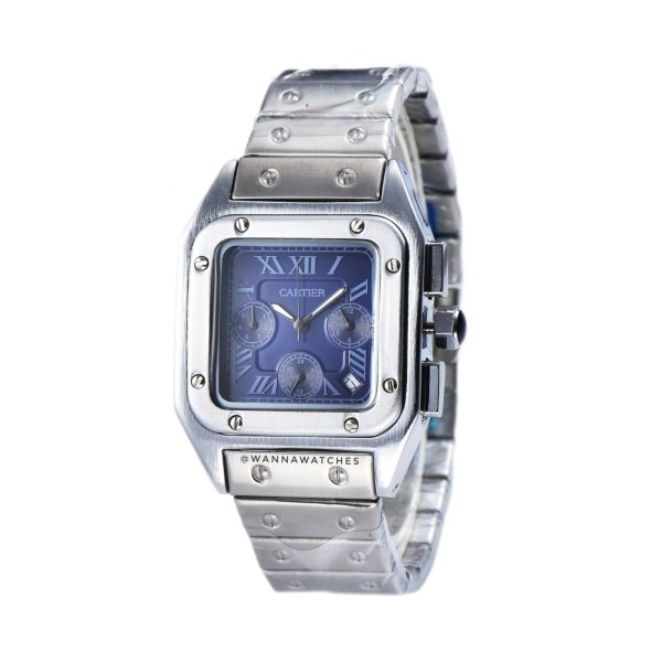 Cartier Santos 39 Cronografo Plateado Esfera Azul