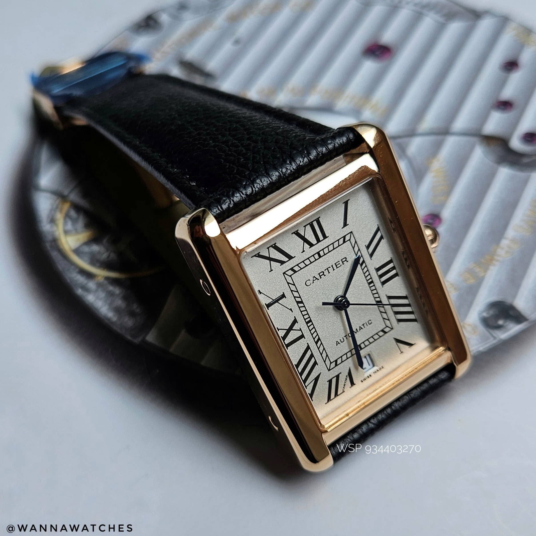 Cartier Tank Solo «XL» Oro Rosa Correa Negra Automático AAA