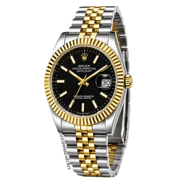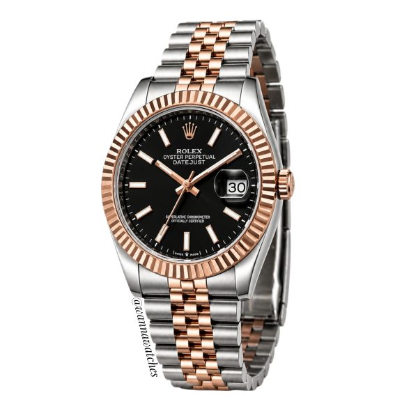 Movimiento: Cuarzo a pila con segundero de movimiento de barrido y fechero de 31 días.