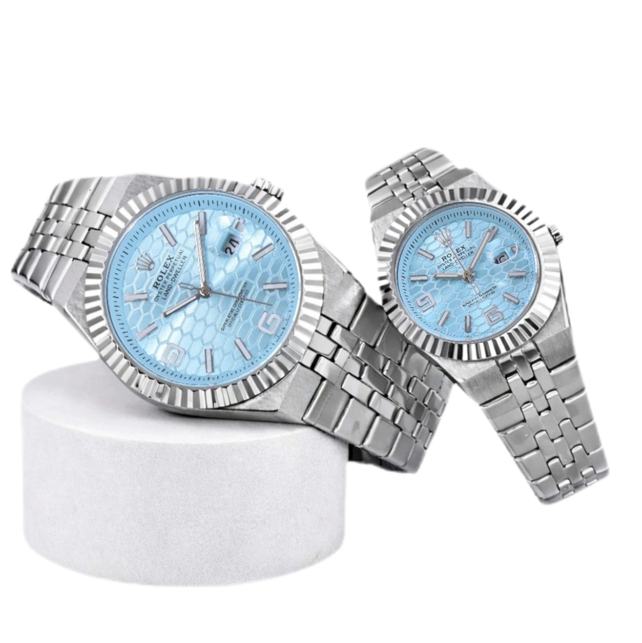 Set de relojes en versión pareja inspirado en el diseño contemporáneo del Land-Dweller, con una estética moderna y bien definida pensada para quienes buscan compartir estilo con coherencia visual. Incluye un modelo de aproximadamente 42 mm para hombre y 33 mm para mujer, logrando una combinación armónica que mantiene identidad en cada pieza, ideal como opción de regalo o para uso coordinado.