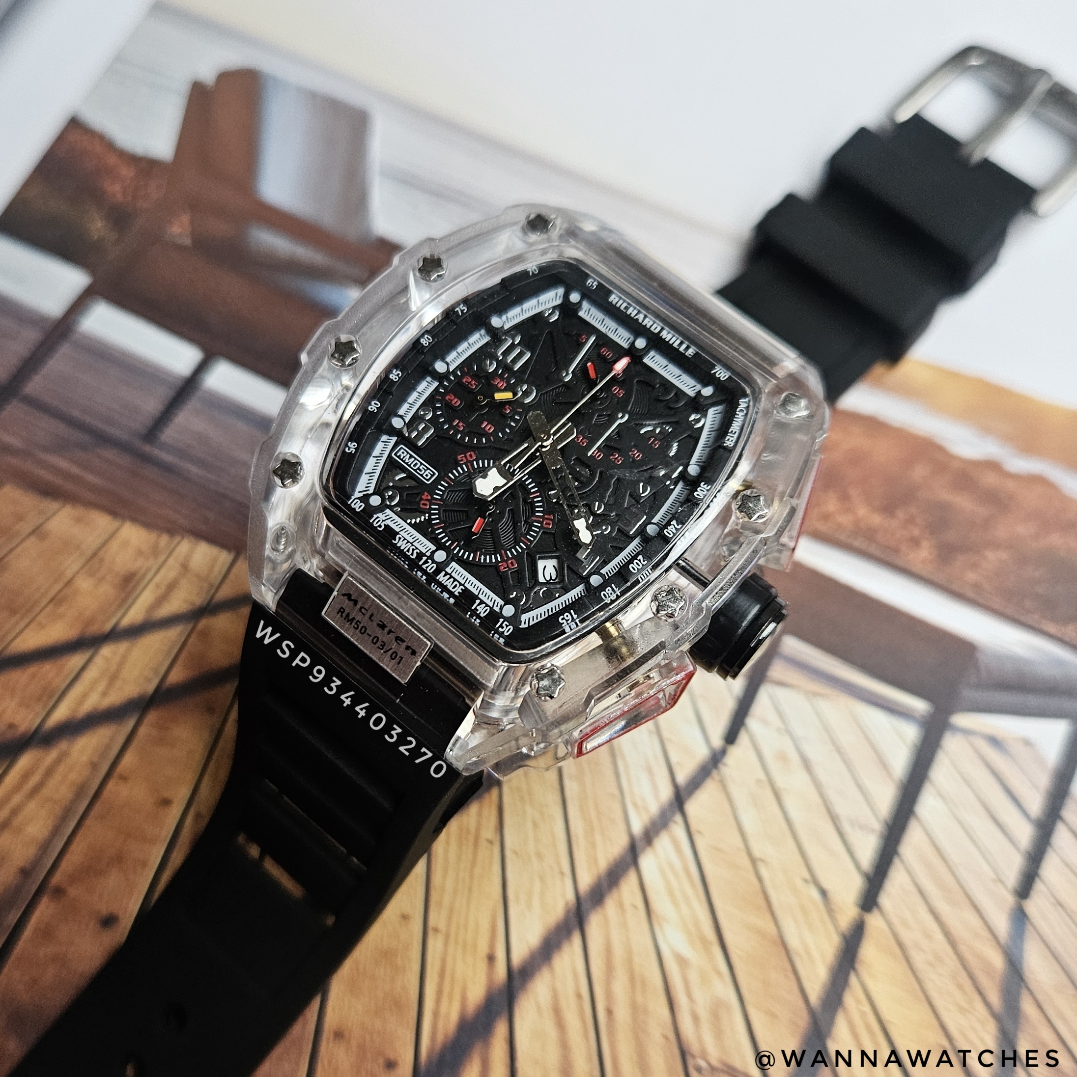 Richard Mille RM 056 PVC McLaren Esqueletizado Correa Negra