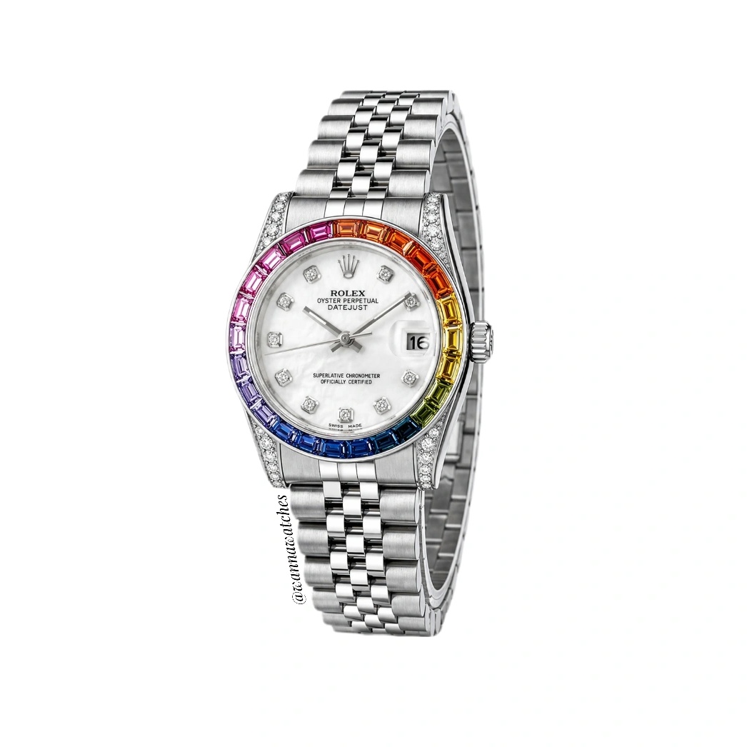 Rolex Lady-Datejust 30 Jubilee Plateado Bizel Rainbow Esfera Nacar