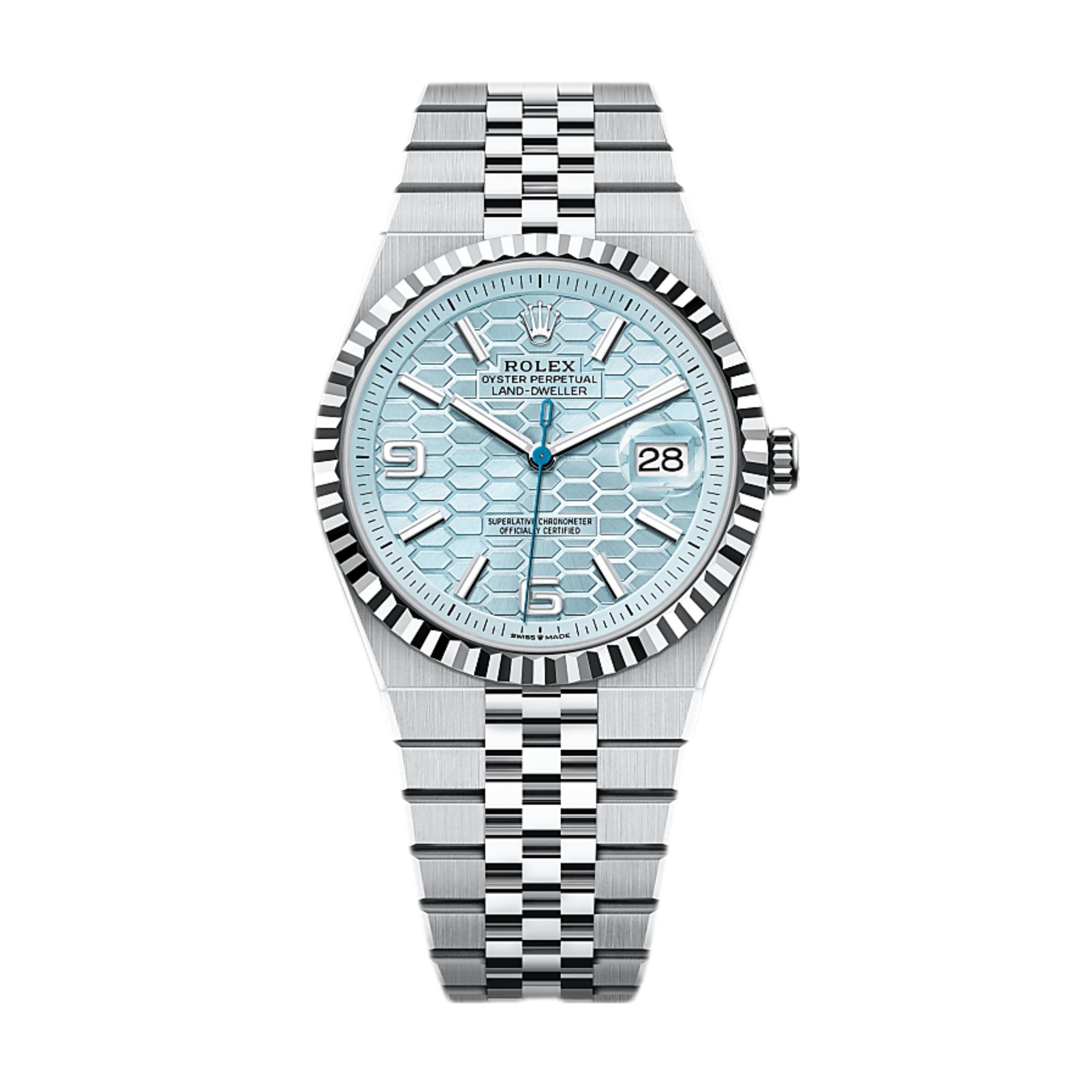Rolex Land-Dweller 40 Acero Esfera Azul Glaciar Brazalete Flat Jubilee Automatico AAA